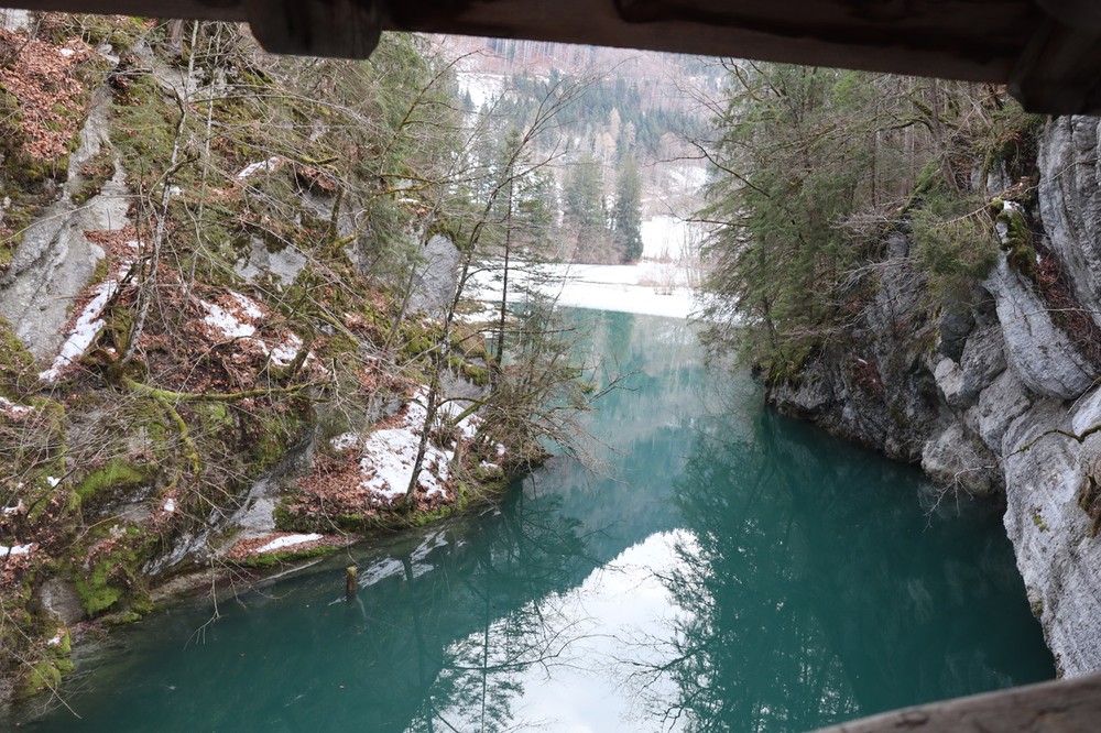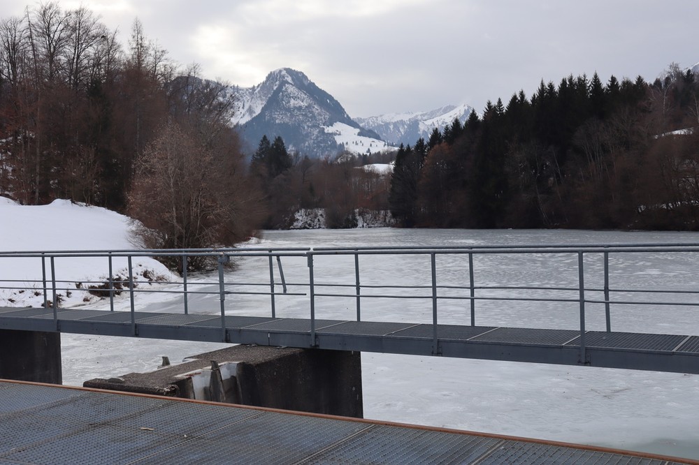 - Vous arrivez sur la route, traversez pour passer sur le barrage qui enjambe la Sarine.