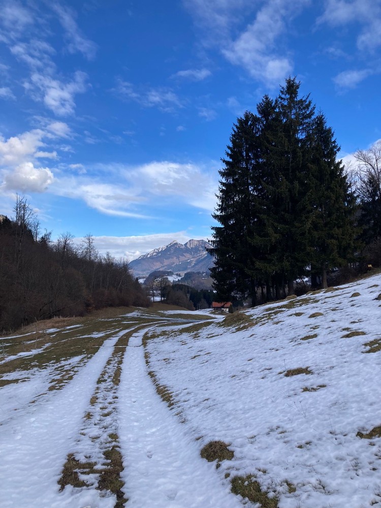 - Une fois devant la gare des Sciernes d’Albeuve, prenez la route sur votre droite qui n’indique pas le village des Sciernes d’Albeuve.